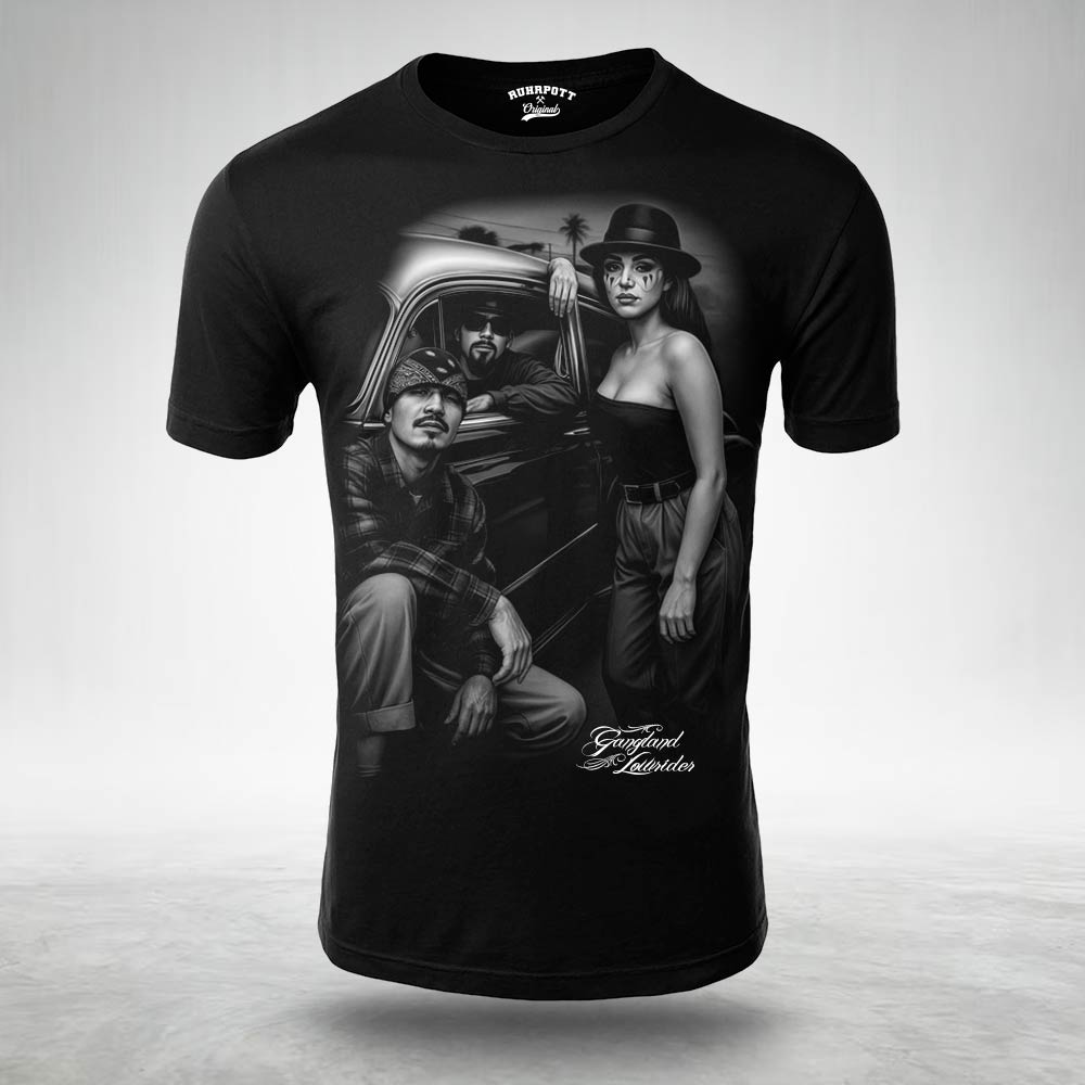 Das Gangland Lowrider T-Shirt bringt den authentischen Chicano-Streetstyle direkt auf die Brust. Der detailreiche Frontprint zeigt eine Lowrider-Szene mit markanten Charakteren, die für den urbanen Lifestyle zwischen Asphalt, Brotherhood und Straßenkultur stehen. Ein Motiv, das klar Haltung zeigt und tief in der Westcoast-Ästhetik verwurzelt ist.